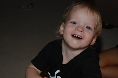After trick-or-treating, the kids were delighted to each pick out a treat to enjoy before bed. Ben wisely chose M&M's which were easy enough to dole out and clean up. Katie's sucker was a little ill advised.